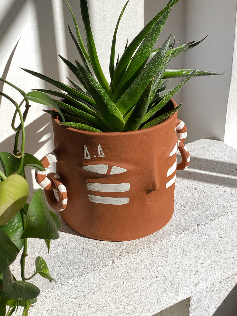 EYES SERAMİK VAZO El yapımı seramik vazo. Koyu kahverengi çamur üzerine beyaz ve siyah renk ile resmedilmiştir. Dışı mat içi sırlıdır. Tamamen doğal malzemelerle, kurşunsuz sır kullanılmaktadır. yükseklik: 20cm çap: 11cm